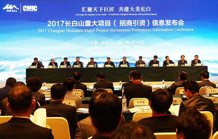 2月16日,2017年长白山重大项目信息发布会在长白山温泉皇冠假日酒店举行。此次发布的重大项目包括长白山林海温泉部落项目、长白山宝马古城文化旅游风景区项目、长白山文化旅游产业基金项目等5大类31个项目,涉及旅游产业、生态资源开发、文化产业等5个方面,招商引资总额高达800亿元左右。